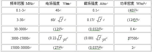 2)供對照參考,不作為限值;表中f是頻率,單位為MHz;表中數據作了取整處理。